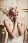 Our Bianca headpiece is the perfect crown to bring out your inner goddess. The headpiece is surrounded by cream and white beaded and sequined motifs with pearly white roses and opal crystals. The crown of the headpiece is made of metal fans with Swarovski crystal and pearl cabochon accents and pearl teardrop finials. We’ve lined the cap in soft, white millinery felt.