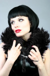 Our luxurious feathered neck wrap will make you feel just like a glamorous film star! This vintage-inspired piece fastens either in the front or the back with an ornate Swarovski crystal-studded silver clasp. A glittering hand-beaded tassel in coordinating colors will keep your audience mesmerized.